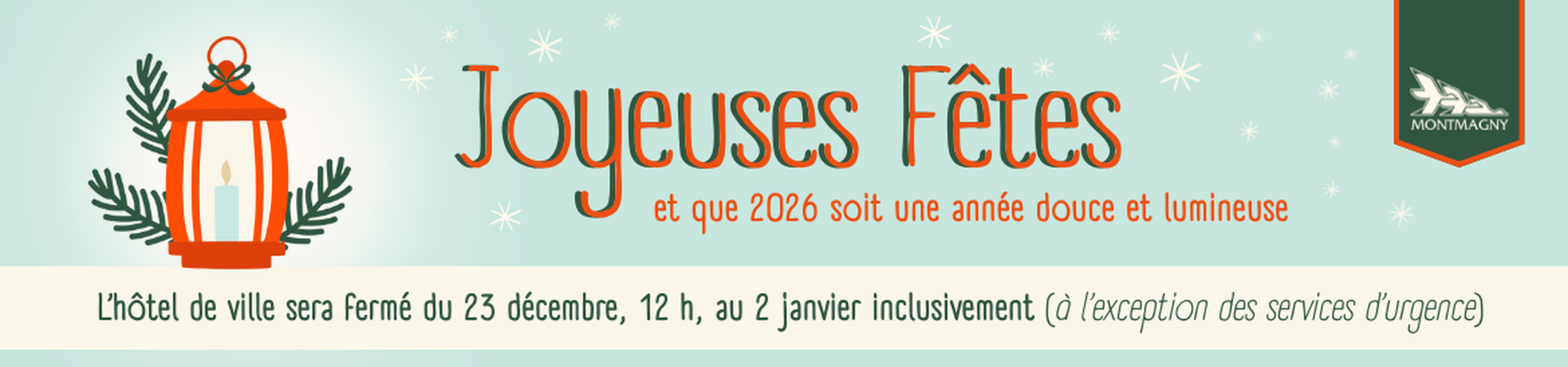 L'hôtel de ville sera fermé à compter du midi le 23 décembre au 2 janvier inclusivement à l'exception des services d'urgence.