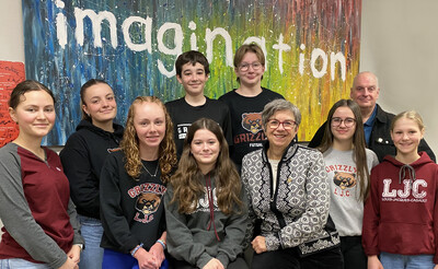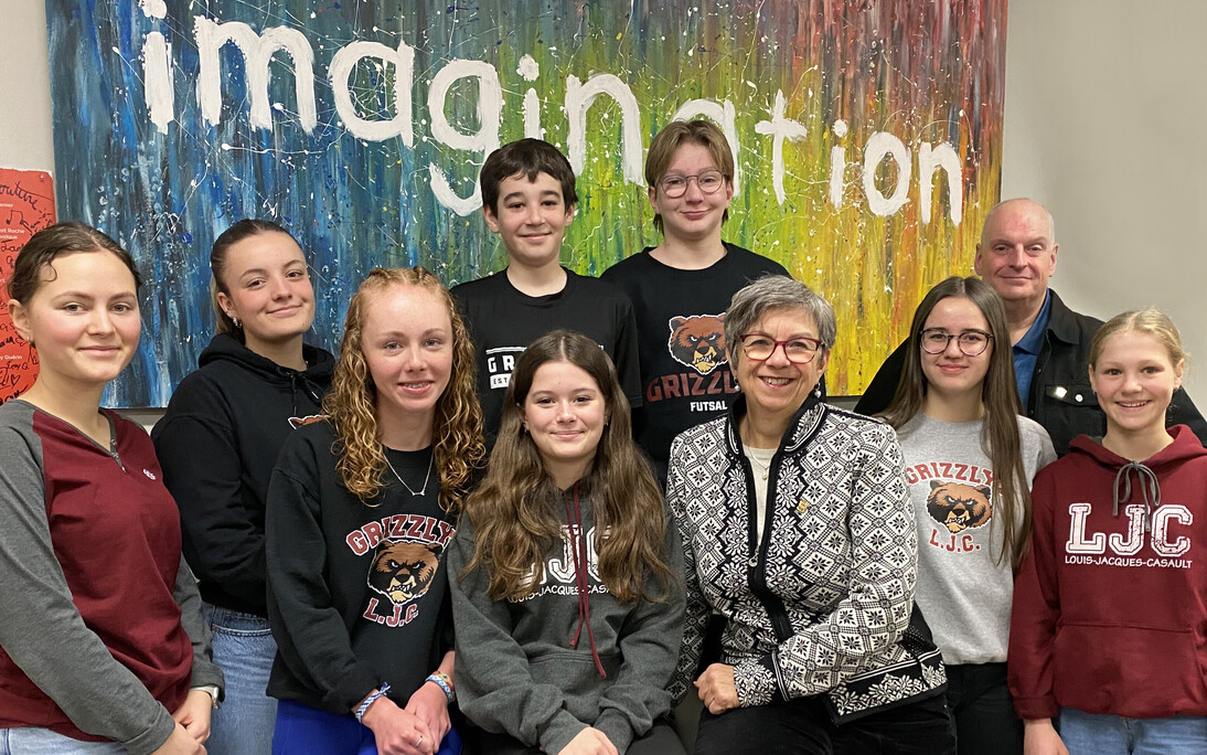 Sur la photo, on aperçoit les conseillers municipaux Mireille Thibault et Jessy Croteau entourés des membres du gouvernement étudiant de l'école secondaire Louis-Jacques-Casault, des jeunes que les élus aimeraient bien compter parmi les participant(e)s inscrits à la rencontre du 15 avril prochain.
