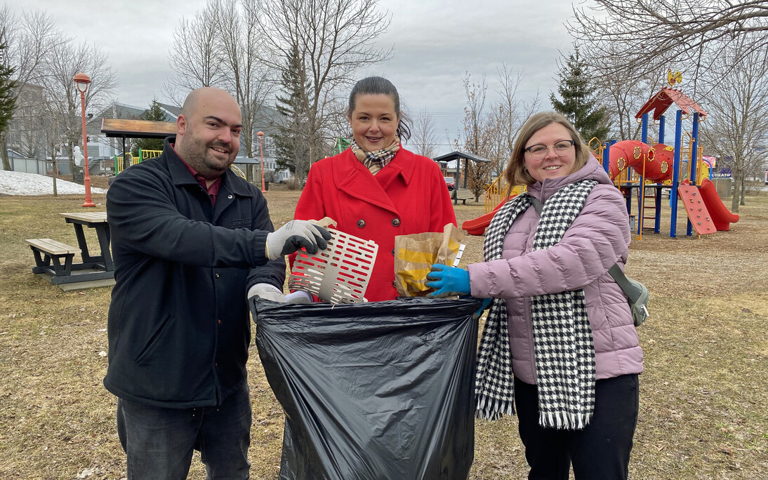 Photo: Annie Beaumont, l'initiatrice du « grand ménage du printemps », en compagnie de Patrick Vachon et de Manon Garant, du Service des loisirs, de la culture et de la vie communautaire et représentants municipaux au sein du Comité de la famille et des aînés de la Ville de Montmagny. (Absent: Bernard Gaudreau, président du Comité de la famille et des aînés)