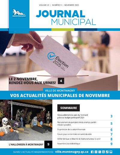 Le Journal municipal mensuel de la Ville de Montmagny est publié! Pour prendre connaissance de l'édition de novembre, deux options sont possibles.