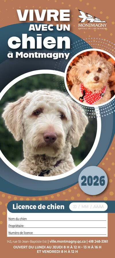 Les propriétaires peuvent se présenter dès maintenant à la réception de l'hôtel de ville (143, rue St-Jean-Baptiste Est) pour effectuer le paiement de leur licence 2026 et profiter des avantages offerts.