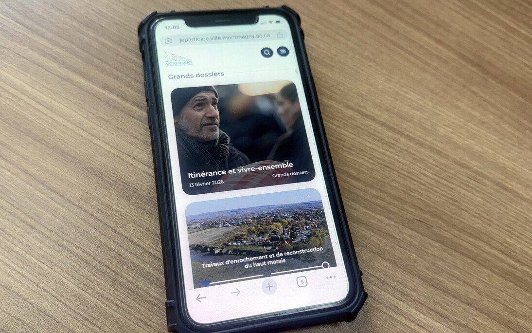 L'itinérance est de plus en plus présente et visible à Montmagny. Cette réalité complexe soulève des enjeux humains, sociaux et communautaires qui nous interpellent collectivement. Comme c'est un phénomène relativement nouveau dans notre ville, il est normal qu'il suscite des questionnements et des appréhensions. La Ville de Montmagny a donc créé, avec l'aval de ses organismes partenaires, un espace en ligne dédié à ce sujet sur sa plateforme de participation citoyenne Je Participe.