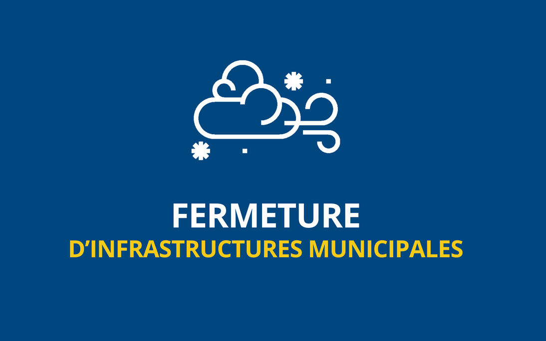 En raison des conditions météorologiques attendues, l'hôtel de ville sera fermé le mercredi 11 mars. L'aréna, la piscine, la bibliothèque et le bureau des Loisirs (101, avenue Ste-Julie) seront également fermés. En savoir plus