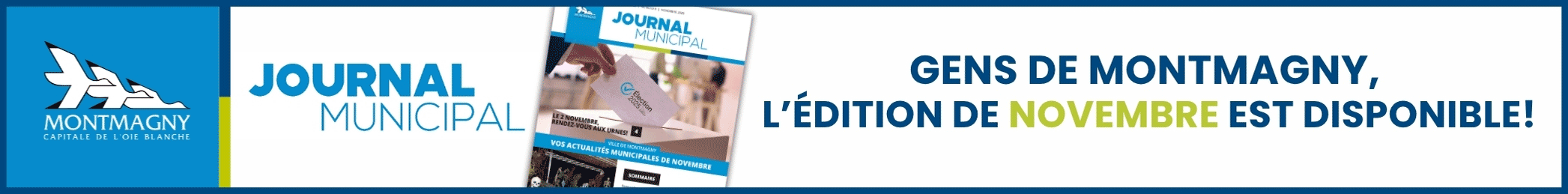 L'édition du Journal municipal de novembre de la Ville de Montmagny est maintenant disponible en ligne ou à quelques points de dépôt. Bonne lecture!
