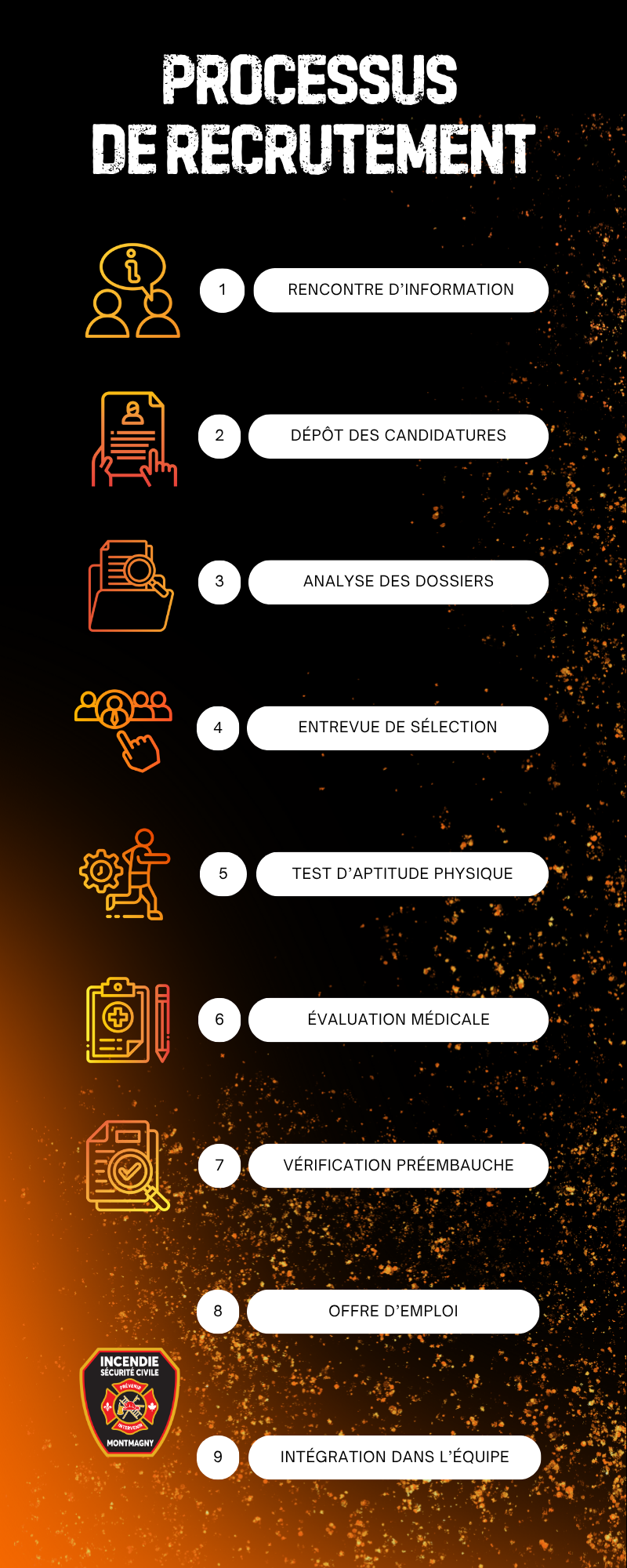 Il ne te reste qu'à déposer ta candidature pour qu'un membre de notre équipe prenne contact avec toi afin de planifier une rencontre. Tu découvriras le métier de pompier(-ière) au sein de notre service, les exigences et conditions de travail ainsi que les étapes du processus de recrutement. Ce sera également l'occasion de répondre à toutes tes questions.