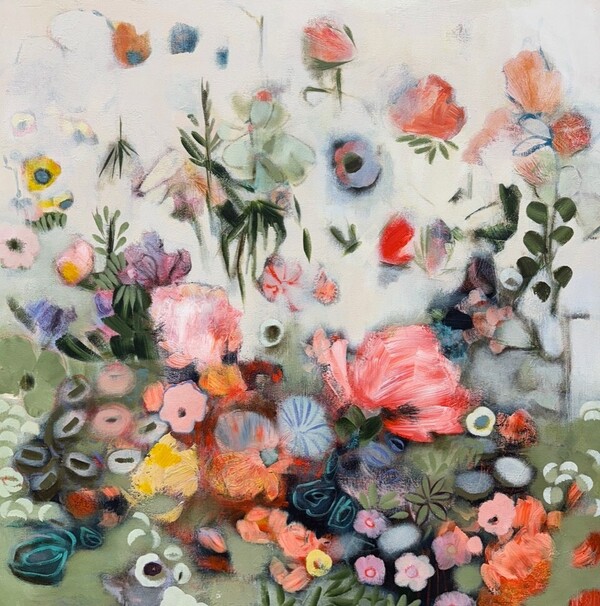 À travers la peinture, la sérigraphie et la gravure, elle explore librement le thème universel et intemporel des fleurs. Son travail, expressif et coloré, naît de l'imaginaire : compositions florales sans contexte ni limites, inspirées par ses rêveries, ses voyages et la douceur du quotidien. Le paysage s'ajoute également à son exploration, et elle tente d'en saisir l'essence par des gestes picturaux spontanés.