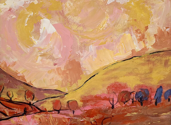 À travers la peinture, je cherche à traduire les impressions du quotidien et à révéler la poésie des instants que l'on croit anodins. Ma pratique repose sur l'observation sensible du monde : les textures et les contrastes deviennent des langages en soi. Chaque toile naît d'un dialogue entre intuition et réflexion, entre ce qui apparaît et ce qui se devine. Les couleurs riches et vibrantes sont utilisées comme vecteurs d'émotion ; elles construisent l'atmosphère et guident le regard.